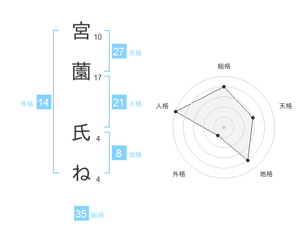 宮薗 氏ねさんの総格は35画の4点!