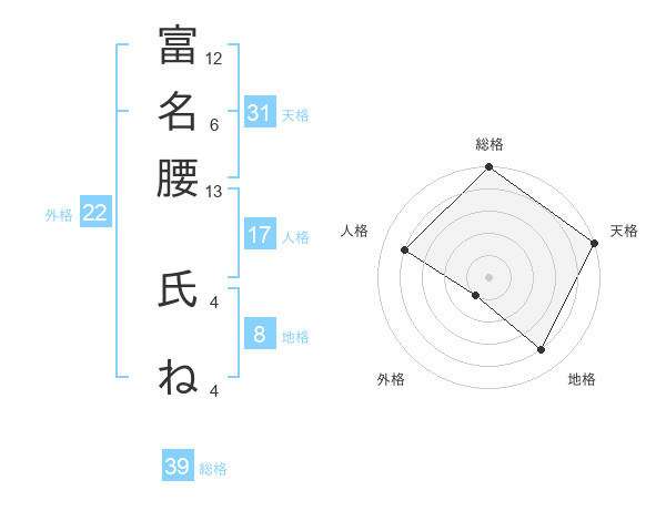 富名腰 氏ねさんを姓名の画数から五運を鑑定