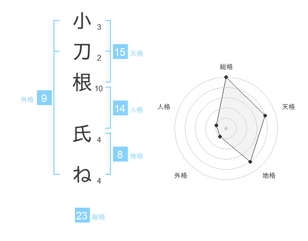 小刀根 氏ねさんを姓名の画数から五運を鑑定