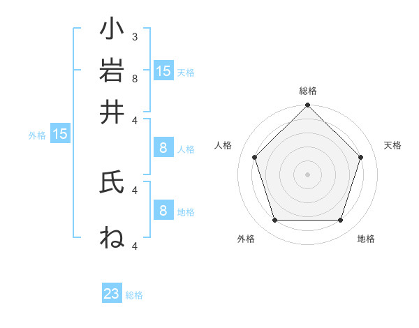 小岩井 氏ねさんの天格は15画の4点!