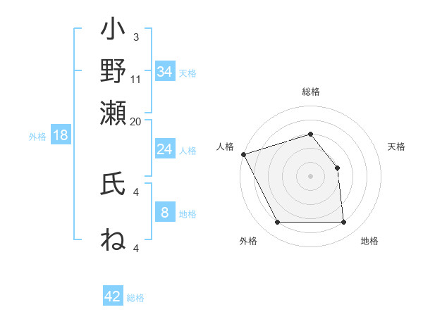 小野瀬 氏ねさんを姓名の画数から五運を鑑定