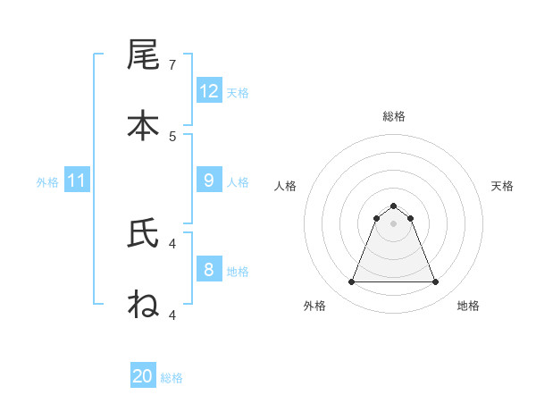 尾本 氏ねさんを姓名の画数から五運を鑑定