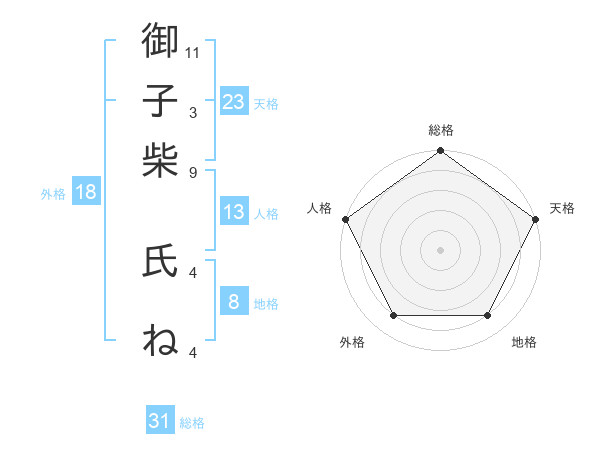 御子柴 氏ねさんの天格は23画の5点!