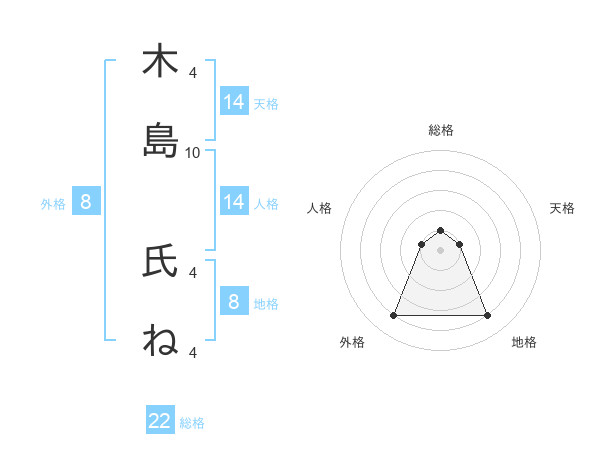 木島 氏ねさんの地格は8画の4点!