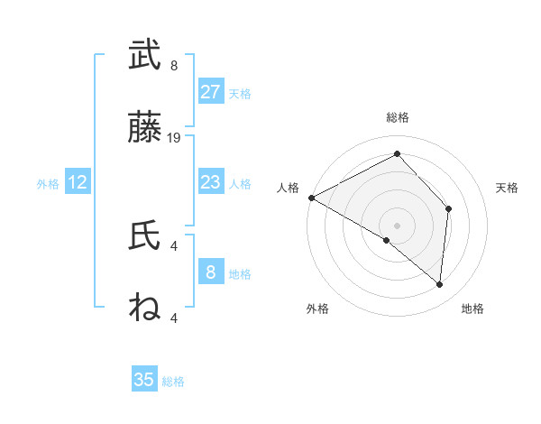 武藤 氏ねさんの地格は8画の4点!