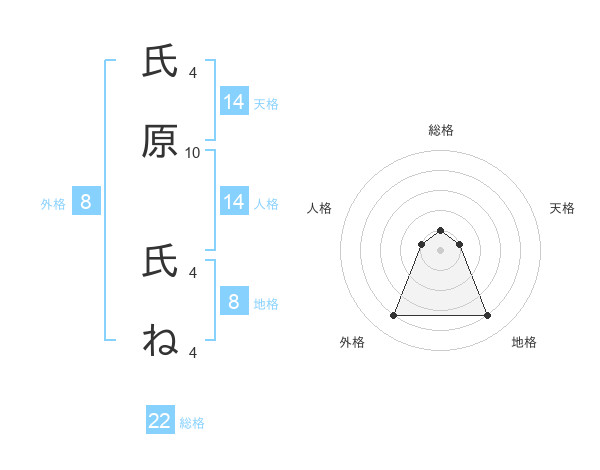 氏原 氏ねさんの外格は8画の4点!