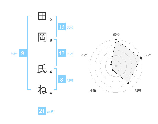 田岡 氏ねさんの天格は13画の5点!