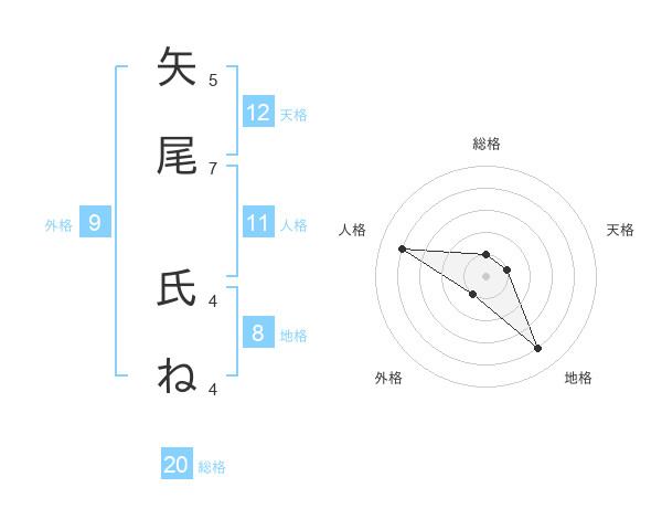 矢尾 氏ねさんの地格は8画の4点!