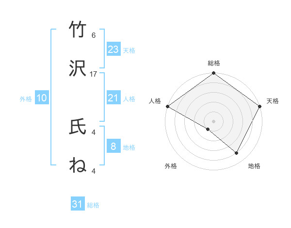 竹沢 氏ねさんを姓名の画数から五運を鑑定