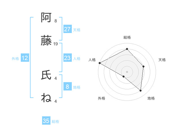 阿藤 氏ねさんを姓名の画数から五運を鑑定