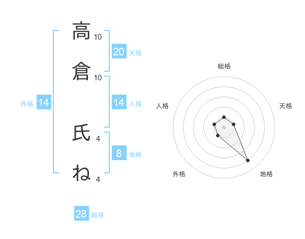 高倉 氏ねさんを姓名の画数から五運を鑑定