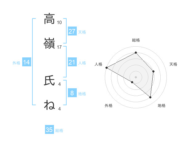 高嶺 氏ねさんの天格は27画の3点!