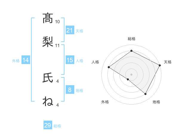 髙梨 氏ねさんの総格は29画の4点!