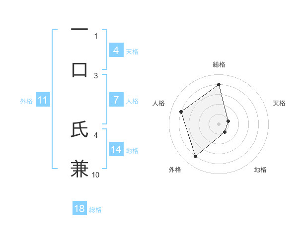 一口 氏兼さんの総格は18画の4点!