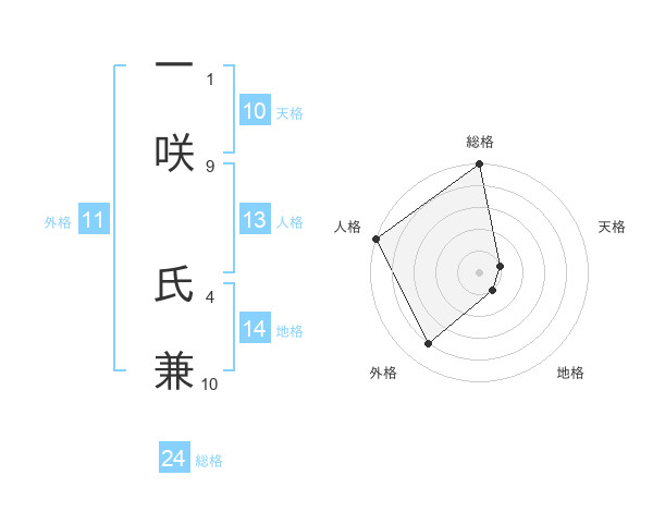 一咲 氏兼さんの外格は11画の4点!