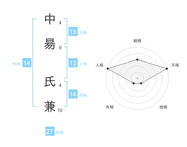 中昜 氏兼さんの天格は13画の5点!