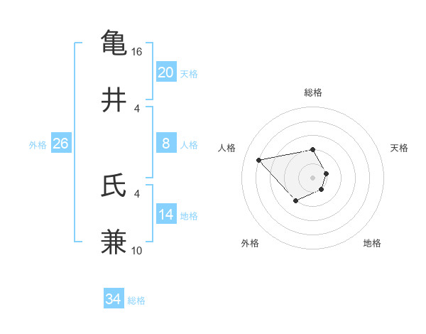 亀井 氏兼さんの天格は20画の1点!