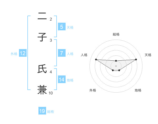 二子 氏兼さんの天格は5画の4点!