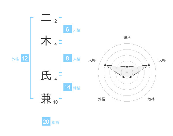 二木 氏兼さんの総格は20画の1点!