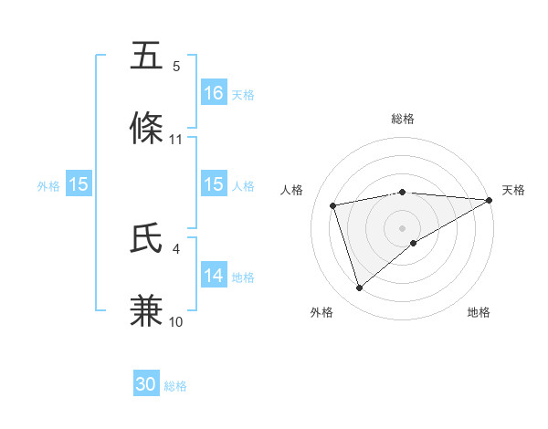 五條 氏兼さんを姓名の画数から五運を鑑定
