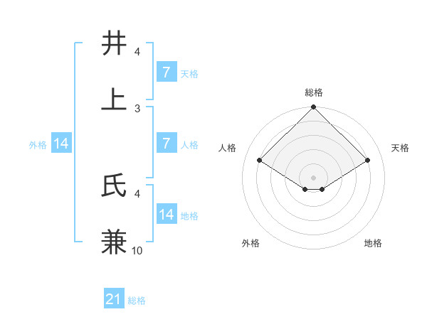 井上 氏兼さんを姓名の画数から五運を鑑定