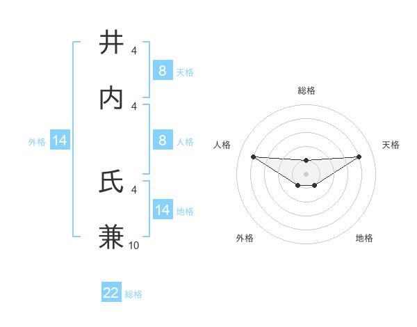 井内 氏兼さんの総格は22画の1点!