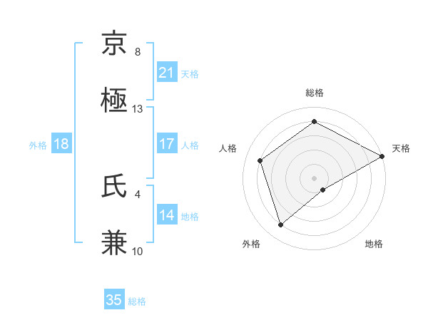 京極 氏兼さんの天格は21画の5点!