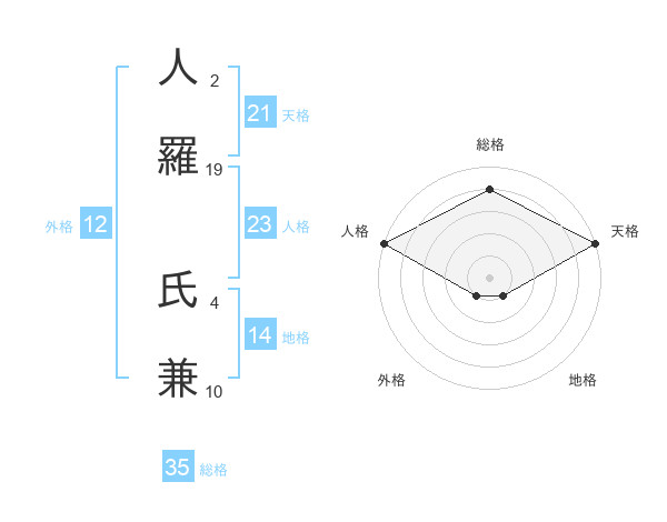人羅 氏兼さんを姓名の画数から五運を鑑定