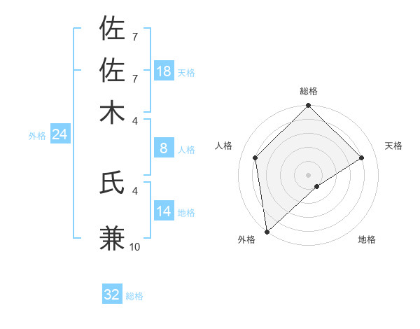 佐佐木 氏兼さんを姓名の画数から五運を鑑定