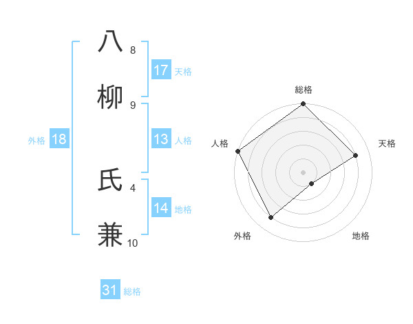 八柳 氏兼さんの天格は17画の4点!
