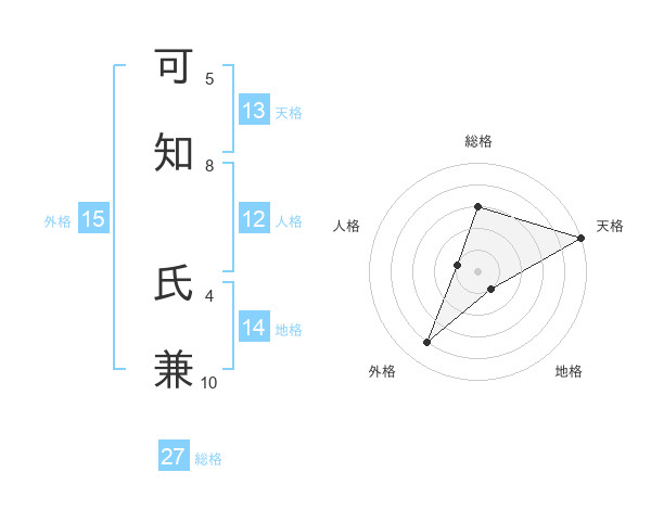 可知 氏兼さんの天格は13画の5点!