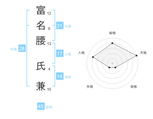 富名腰 氏兼さんの総格は45画の4点!