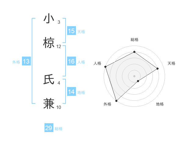 小椋 氏兼さんの総格は29画の4点!