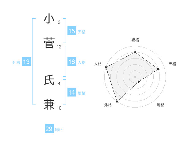小菅 氏兼さんを姓名の画数から五運を鑑定