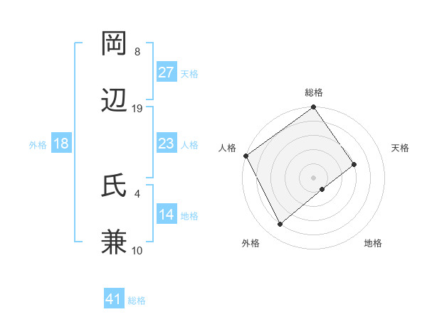 岡辺 氏兼さんの総格は41画の5点!