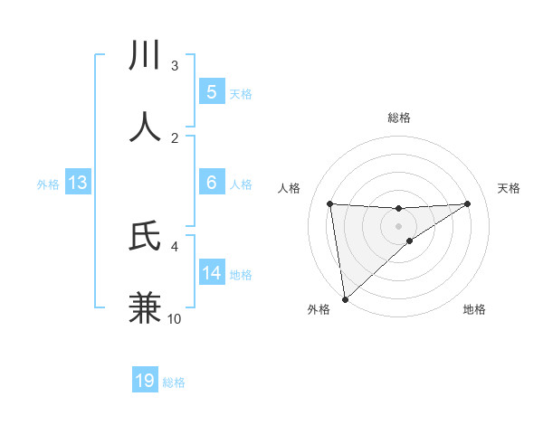 川人 氏兼さんの外格は13画の5点!