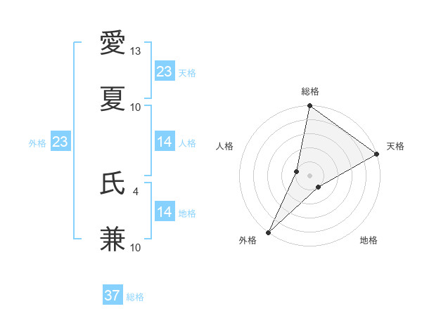 愛夏 氏兼さんの外格は23画の5点!