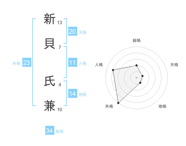 新貝 氏兼さんを姓名の画数から五運を鑑定