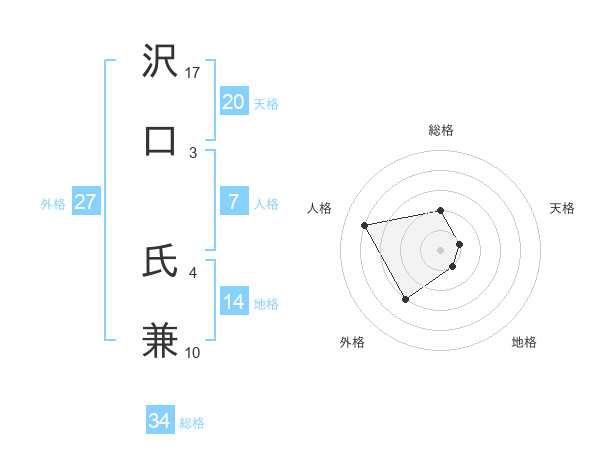 沢口 氏兼さんを姓名の画数から五運を鑑定