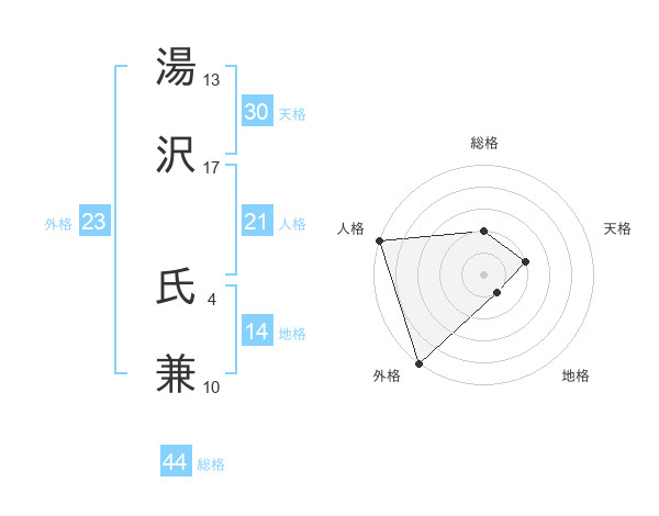 湯沢 氏兼さんの外格は23画の5点!