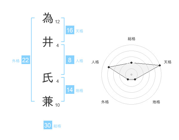 為井 氏兼さんの総格は30画の2点!