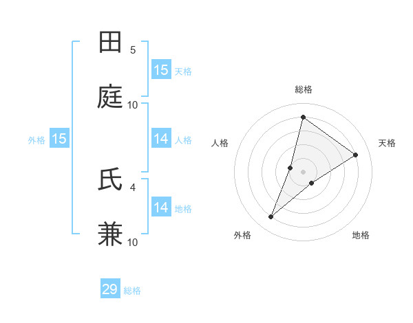 田庭 氏兼さんの総格は29画の4点!