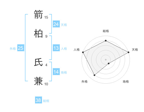 箭柏 氏兼さんの総格は38画の4点!