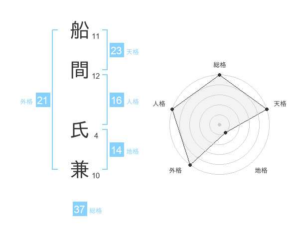 船間 氏兼さんを姓名の画数から五運を鑑定