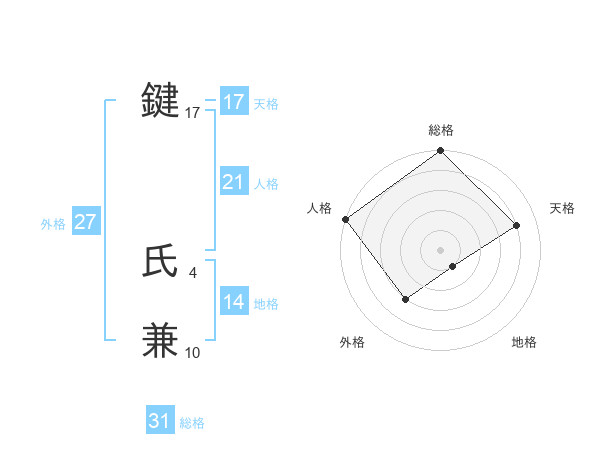鍵 氏兼さんの天格は17画の4点!
