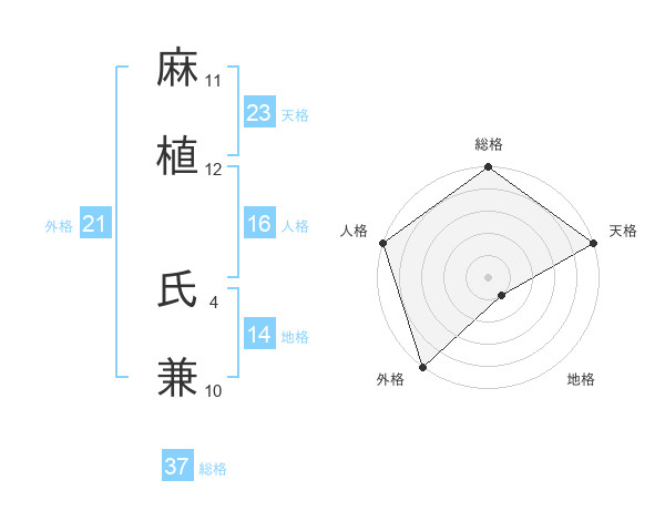 麻植 氏兼さんを姓名の画数から五運を鑑定