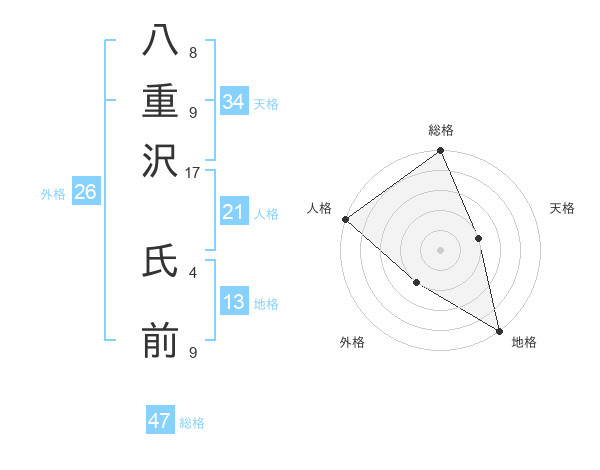 八重沢 氏前さんを姓名の画数から五運を鑑定