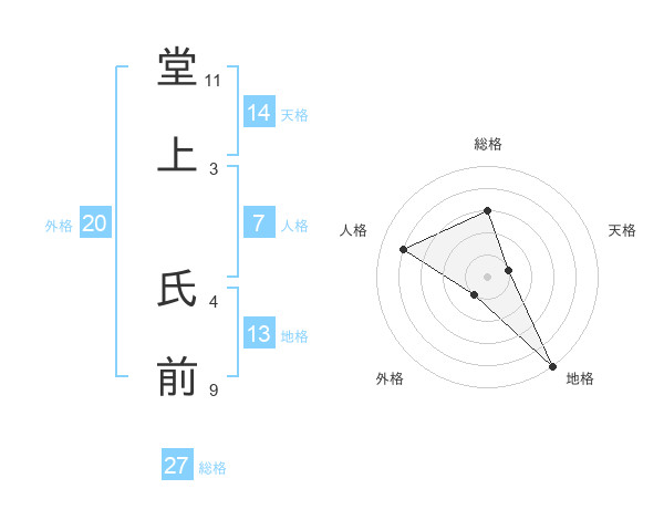 堂上 氏前さんを姓名の画数から五運を鑑定