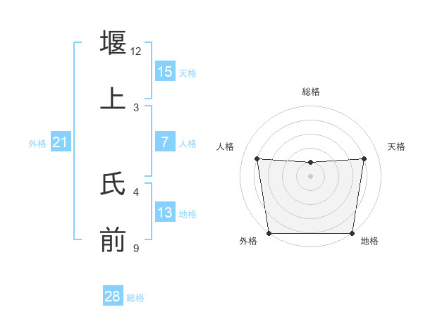 堰上 氏前さんを姓名の画数から五運を鑑定