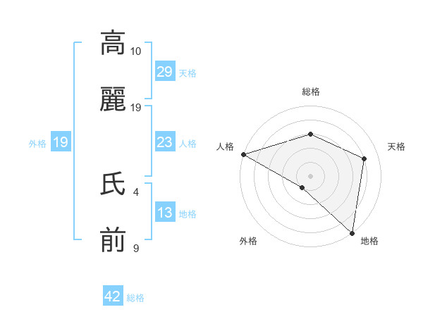高麗 氏前さんを姓名の画数から五運を鑑定